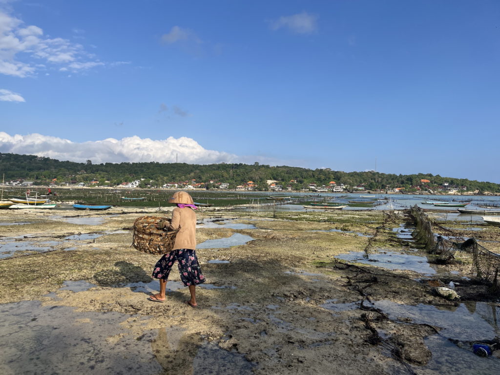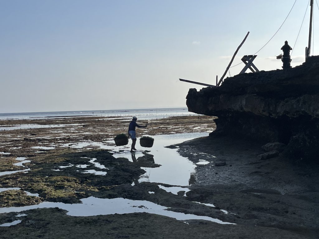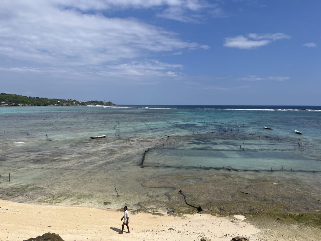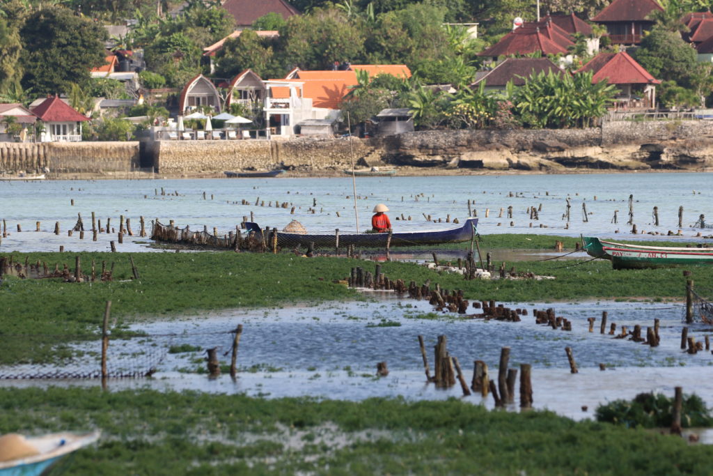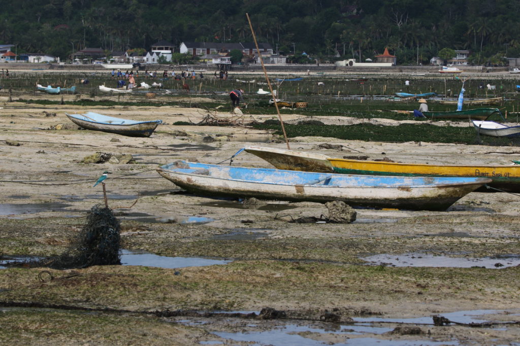 Sur la côte sud où se trouve notre hébergement, pas de plage de rêve. Mais la vie locale est active et un ballet laborieux s’y déroule au rythme des marées. Les derniers habitants ne vivant pas du tourisme sont cultivateurs d’algues. Il y a 20 ans, seuls 5% des autochtones vivaient du tourisme. Aujourd’hui la proportion s’est hélas inversée…