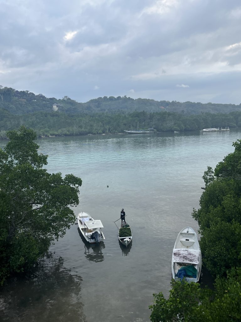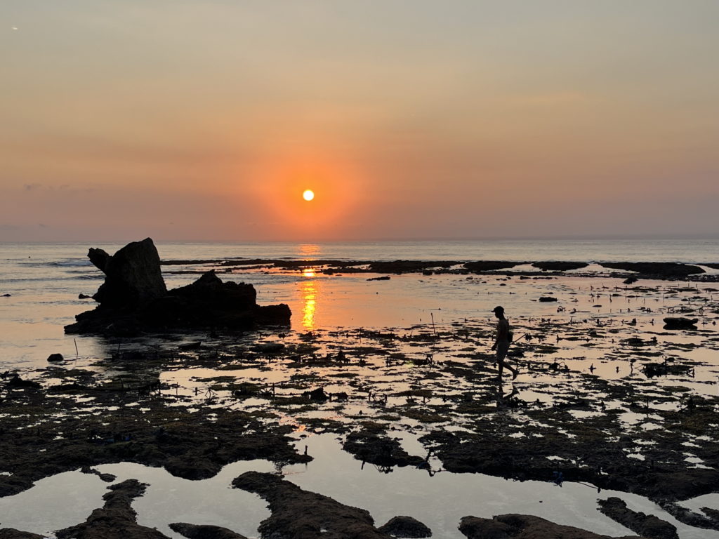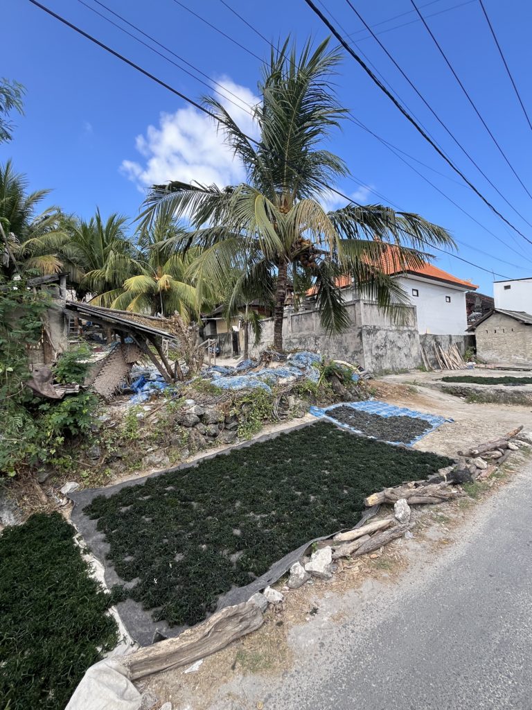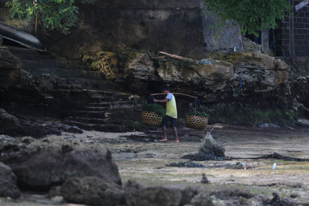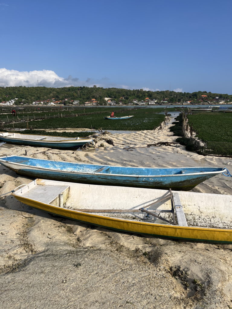 Sur la côte sud où se trouve notre hébergement, pas de plage de rêve. Mais la vie locale est active et un ballet laborieux s’y déroule au rythme des marées. Les derniers habitants ne vivant pas du tourisme sont cultivateurs d’algues. Il y a 20 ans, seuls 5% des autochtones vivaient du tourisme. Aujourd’hui la proportion s’est hélas inversée…