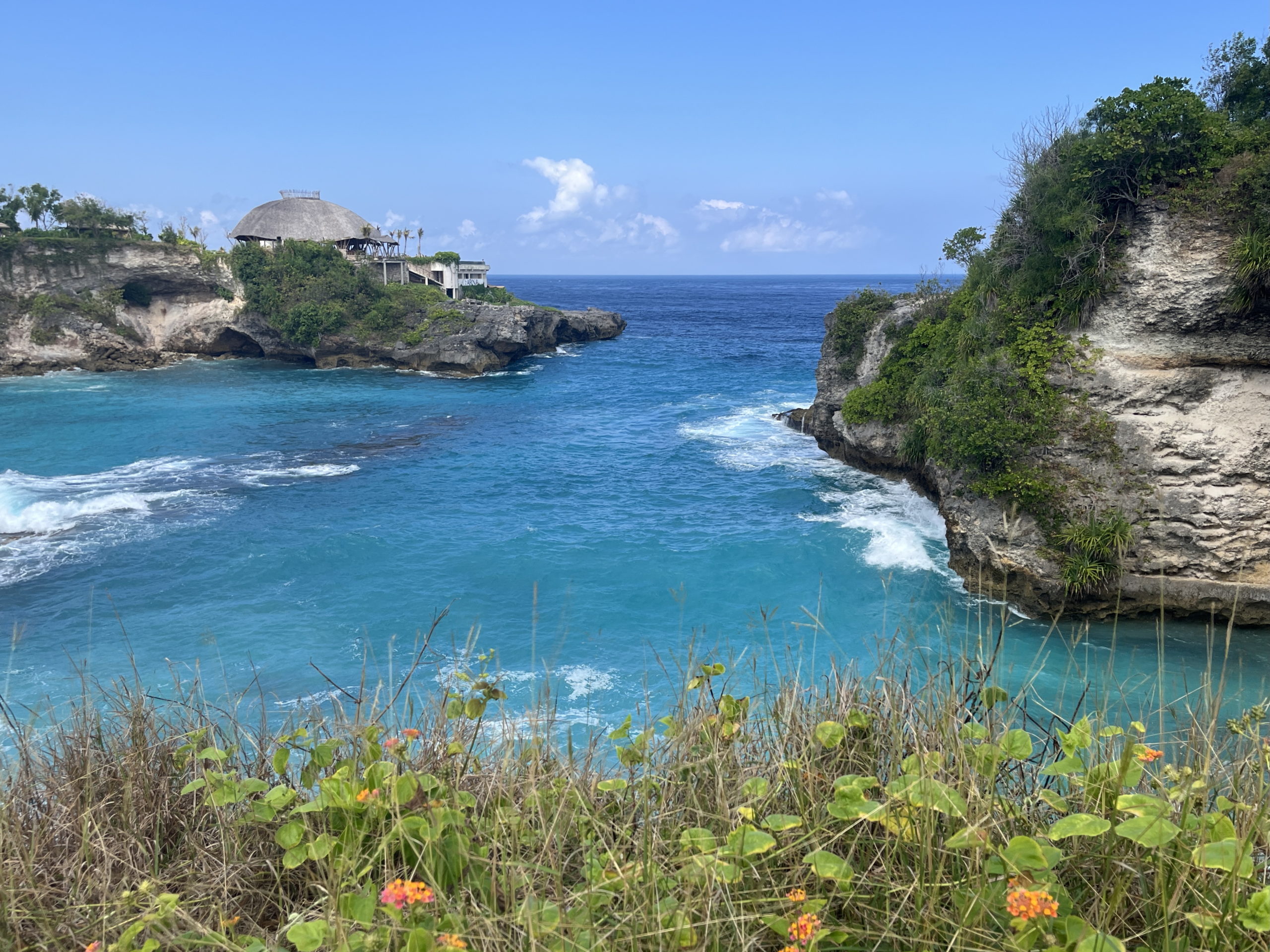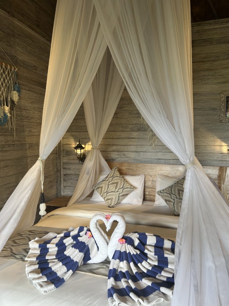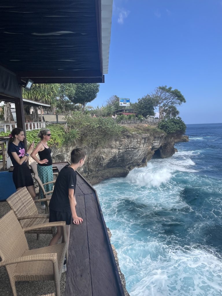 Nous sommes accueillis dans un petit hébergement de taille familiale au sud de l’île, l’hôtel Nusa Lembongan Seaview. Elle est équipée de notre piscine à débordement avec vue sur mer. On avoue, on adore 😉