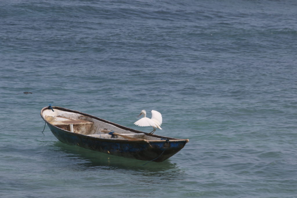 Après 25 min de traversée remuante et salée, nous débarquons à pieds nus. C’est un peu de le début de l’aventure…