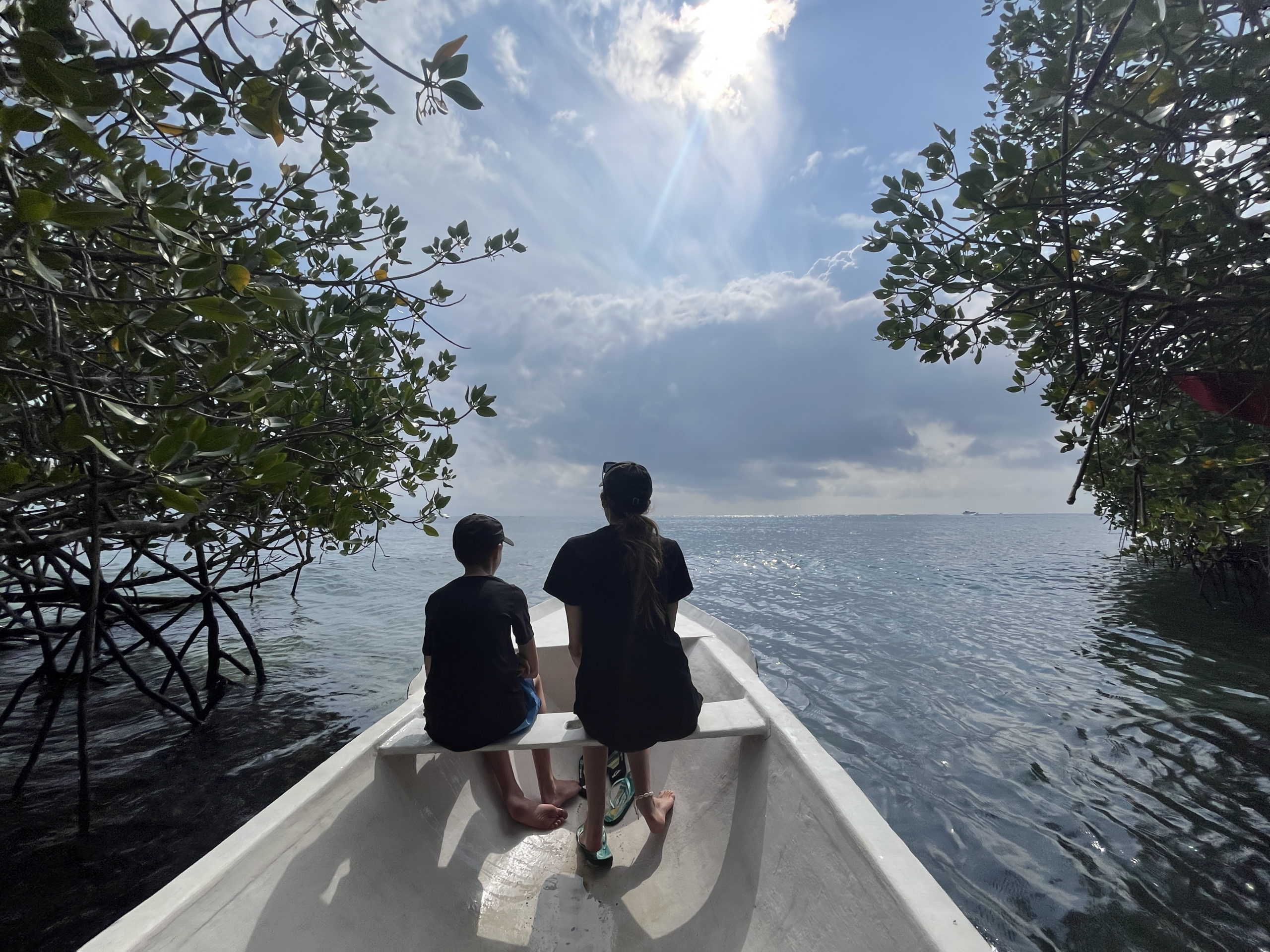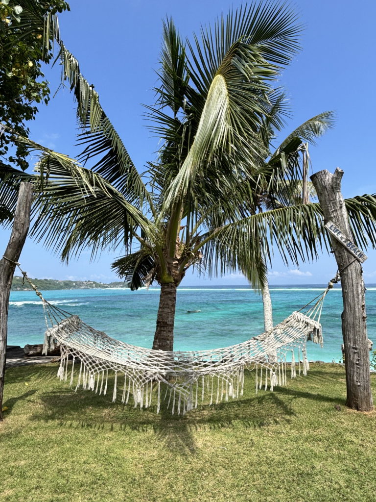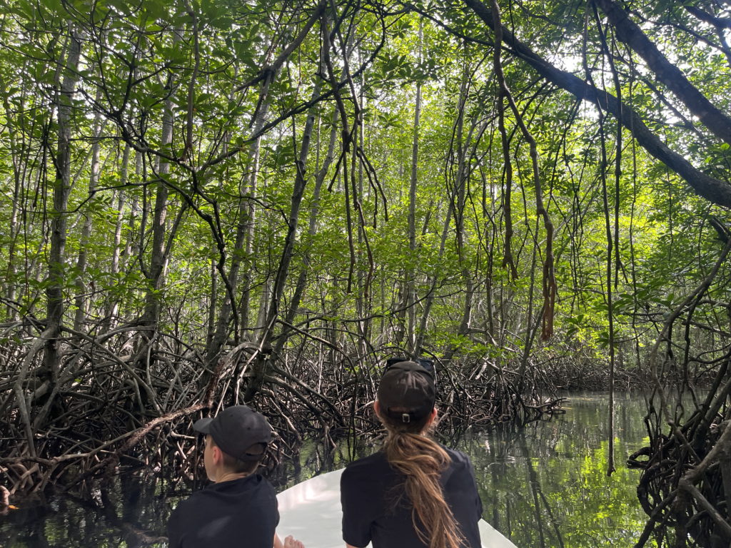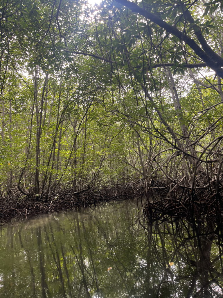 Au deuxième jour, nous quittonscnotre lieu reposant pour traverser La petite île en voiturette en direction de la pointe Est de l’île, bien nommée Mangrove point.