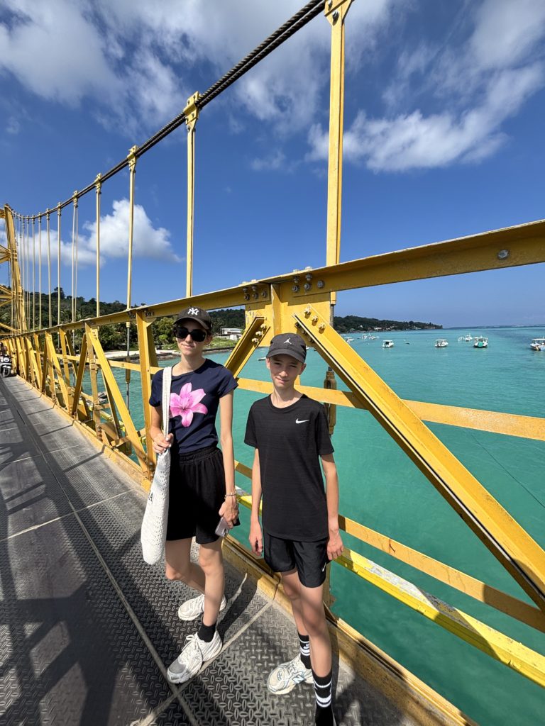 Plus tard en journée toute la famille reprend le sentier du Yellow Bridge pour poursuivre plus loin sur l’île voisine de Ceningan.