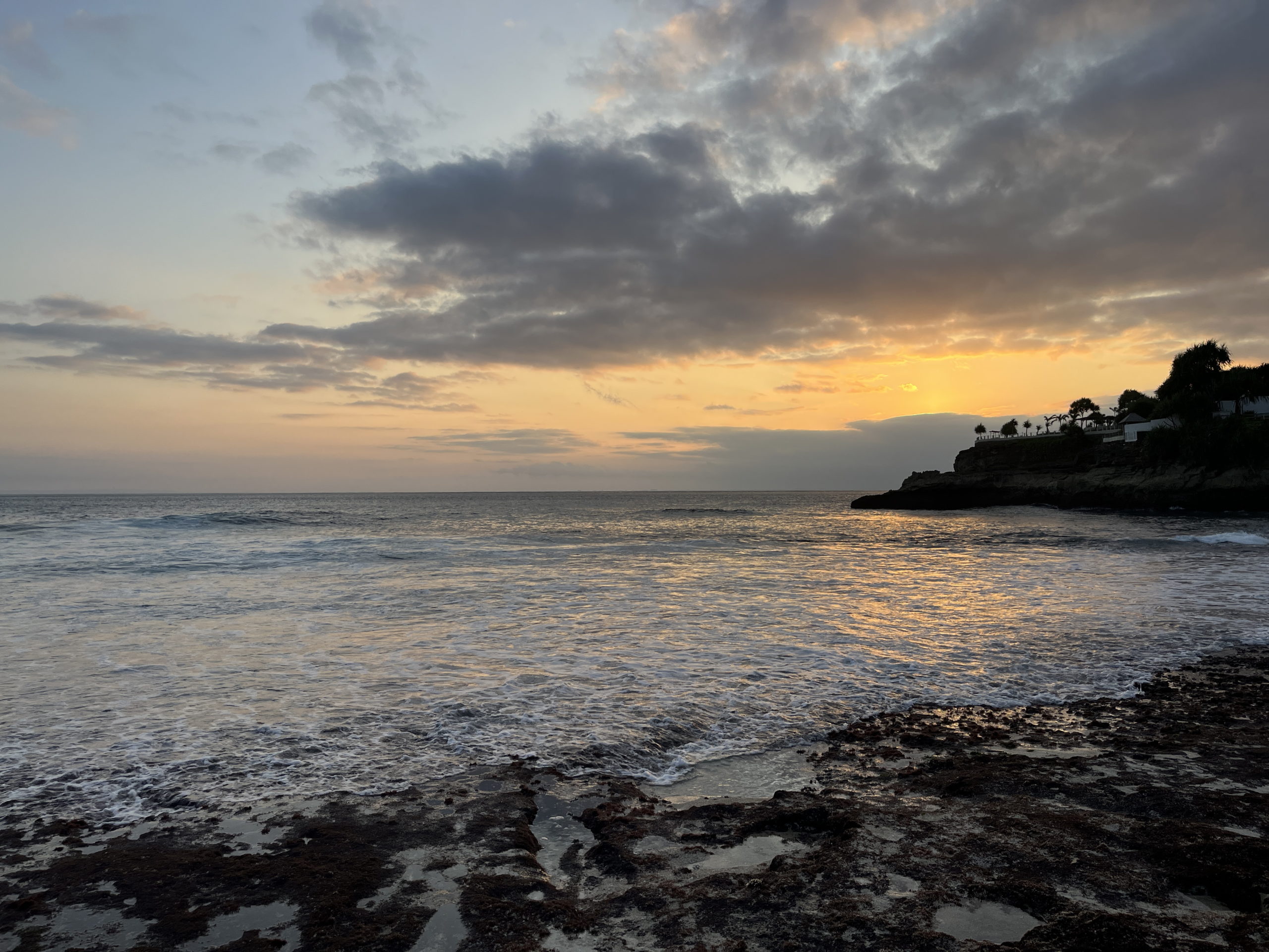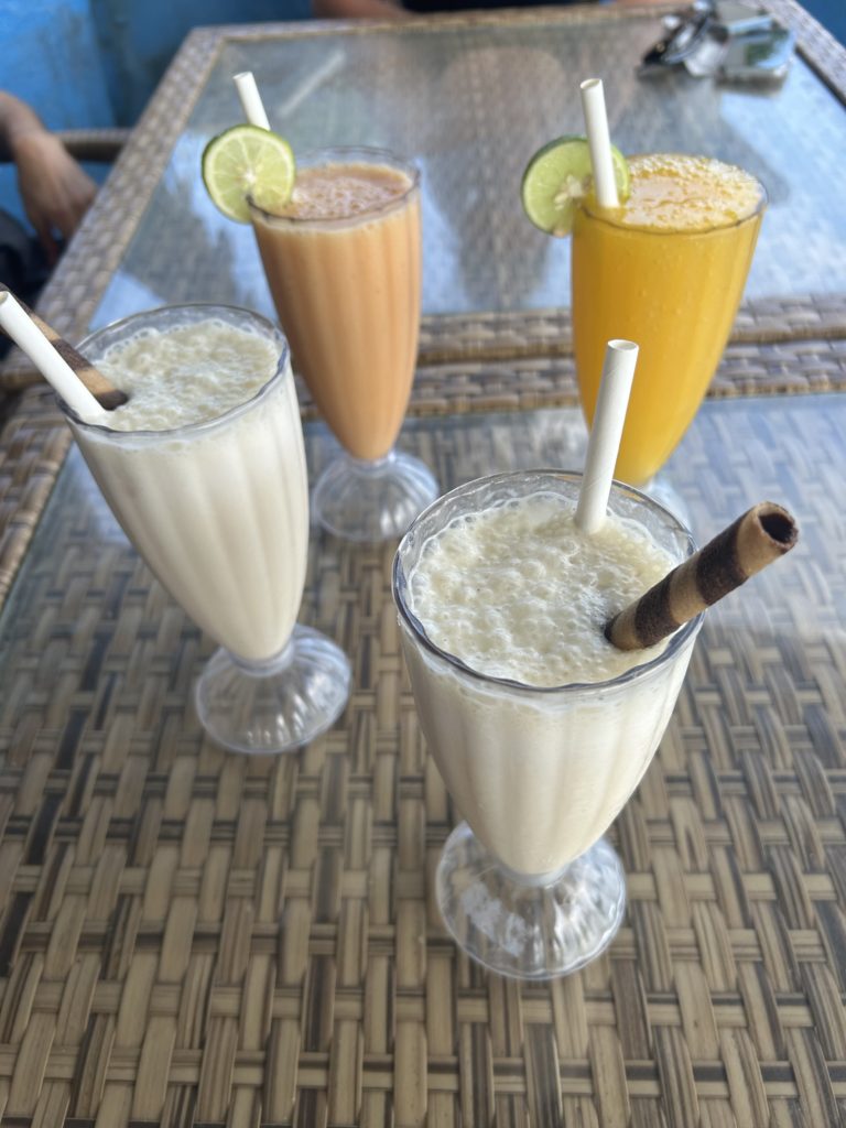 Après l’apéritif fruité – le smoothie est la tradition ici!- nous profitons des lueurs du couchant au bord de la côte.
