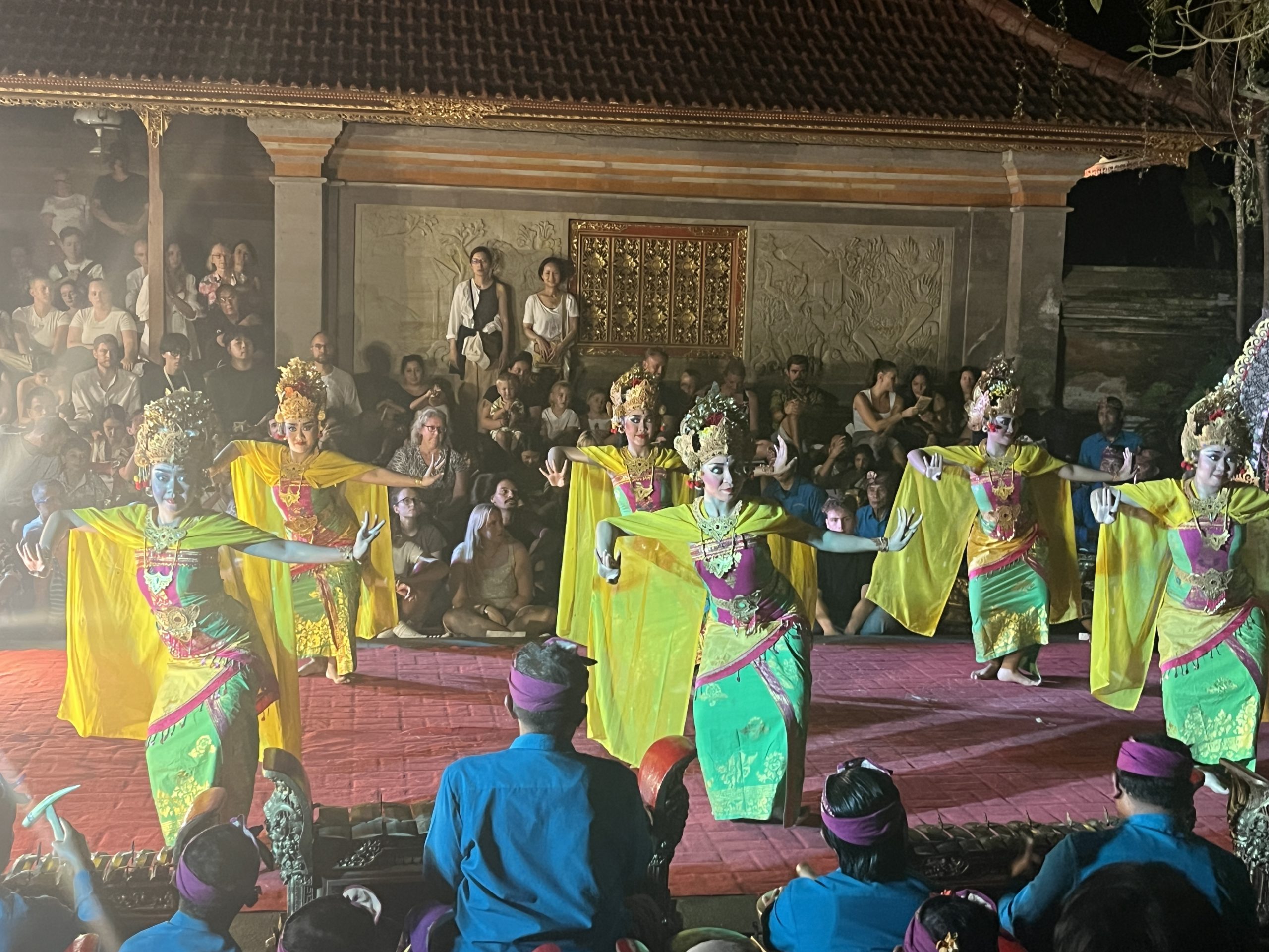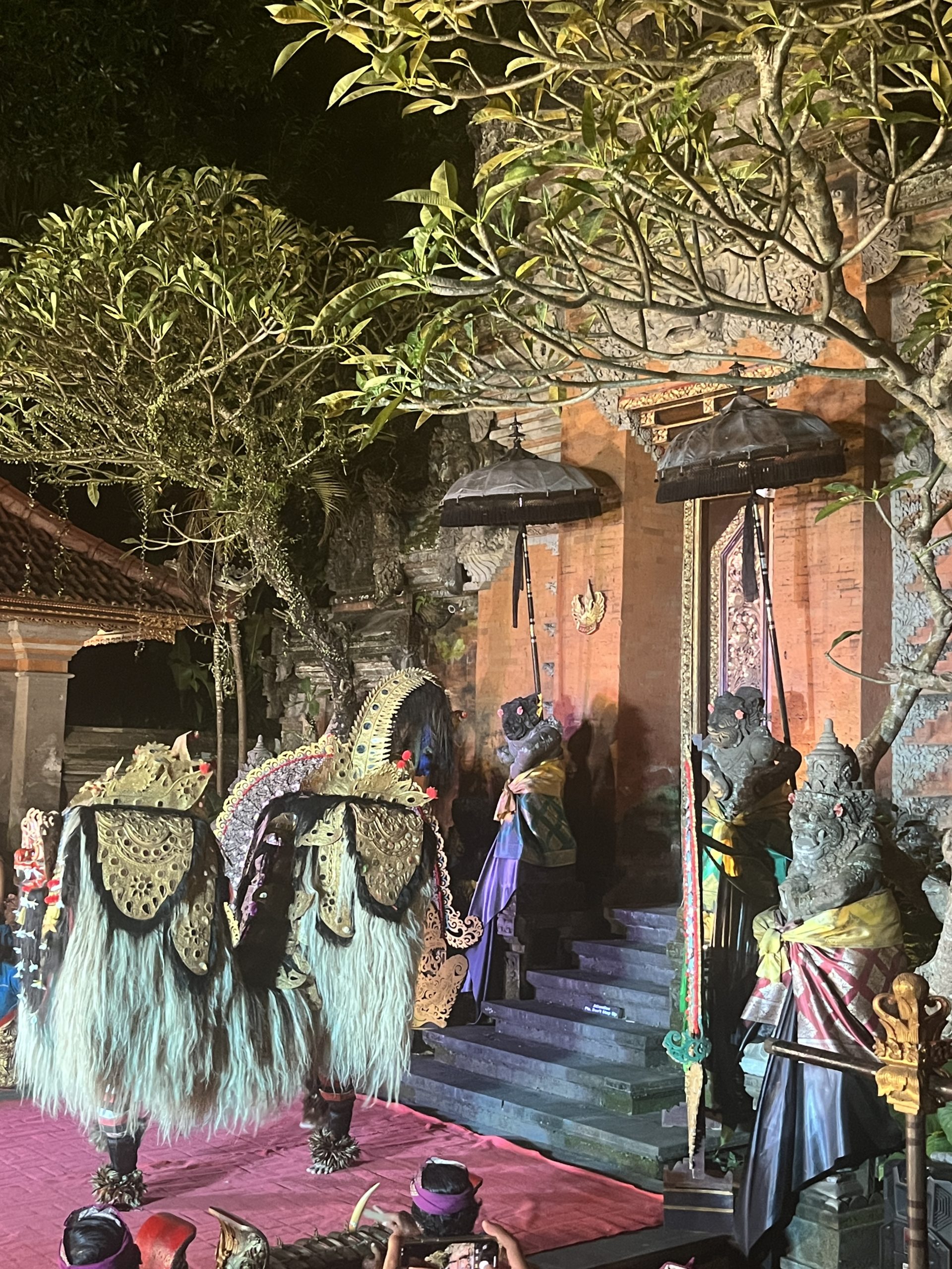 …puis de nuit pour le spectacle de danse traditionnelle balinaise. Nous assistons aux danses Legong et Barong… un grand (et un peu long!) moment…