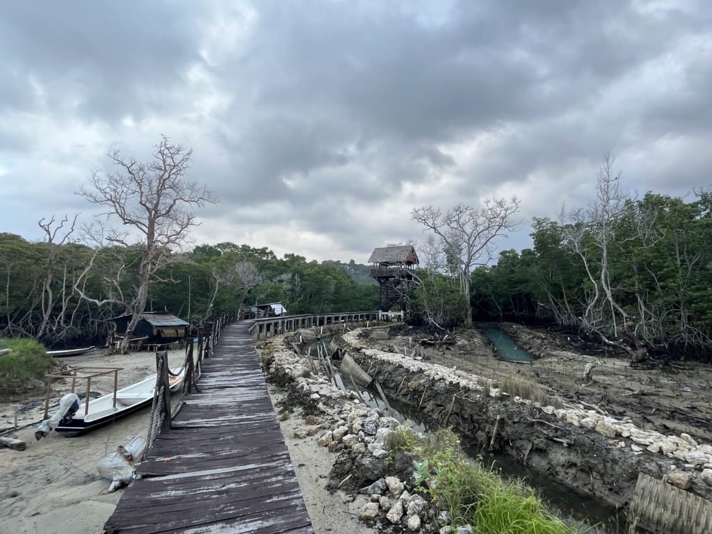 Dans la mangrove, une tour d’observation a été érigée pour observer la faune.